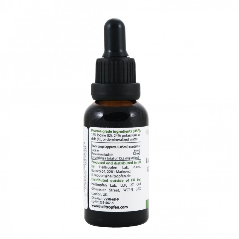 12% jod i 24% kalijev jodid otopina u destiliranoj vodi. Proizvodeno u EU, farmaceutske čistoće.